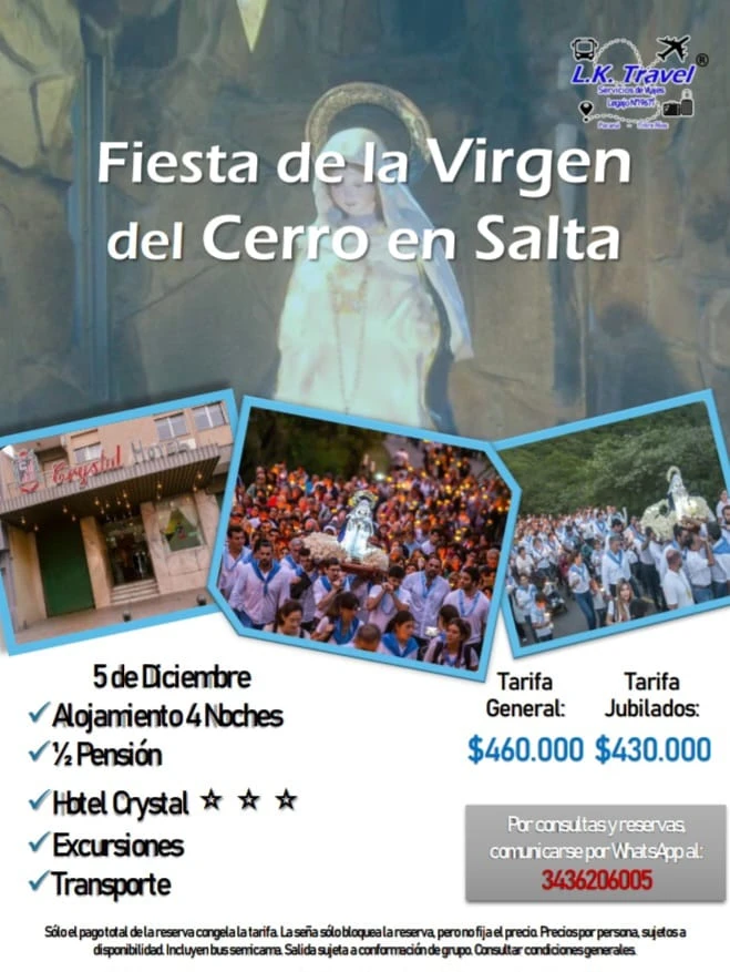Disfruta de una experiencia inolvidable en la Fiesta de la Virgen del Cerro en Salta. Sumérgete en la paz y la serenidad de este evento tradicional, rodeado de buena compañía y paisajes naturales impresionantes. Descubre nuevos lugares y crea buenos momentos con amigos y familiares. La Fiesta de la Virgen del Cerro es una oportunidad única para conocer y disfrutar de la rica cultura y tradición de Salta.