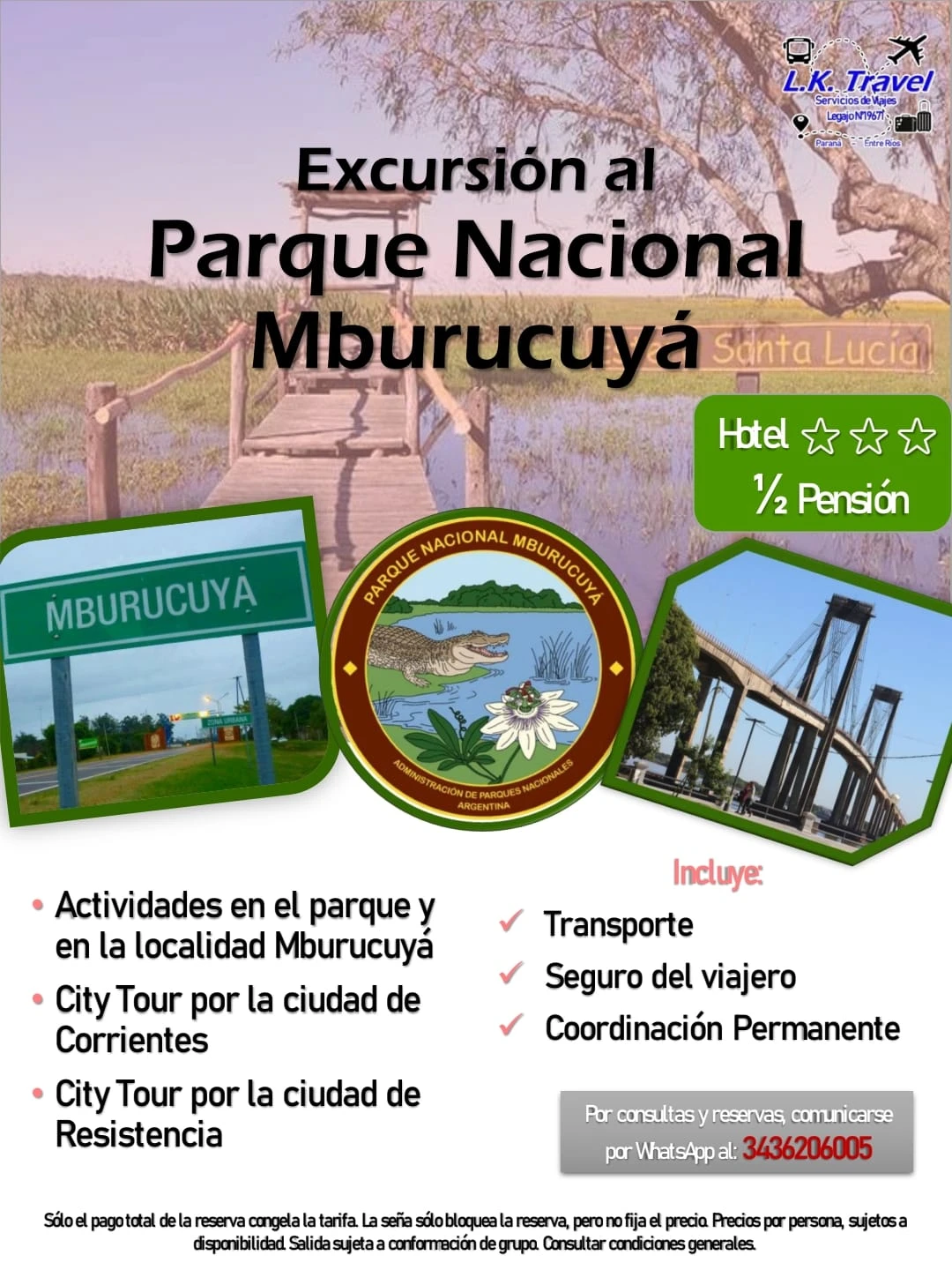 ¡Descubre la esencia de la naturaleza y la tradición en el Parque Nacional Mburucuyá! Ubicado cerca de la ciudad de Corrientes, este destino turístico es perfecto para aquellos que buscan escapar del ajetreo urbano y conectar con la cultura y la biodiversidad de la región. Inmerso en un entorno natural impresionante, el parque ofrece una experiencia única para los amantes de la naturaleza. Puedes realizar un paseo en carro por sus senderos y disfrutar del paisaje, o unirte a un city tour en la ciudad de Corrientes para conocer sus encantos urbanos. La riqueza cultural de la zona también se refleja en sus tradiciones y eventos locales, que son una excelente oportunidad para sumergirse en la auténtica esencia de la región. ¡No te pierdas la oportunidad de explorar Mburucuyá y llevar contigo recuerdos inolvidables de este paraíso natural!