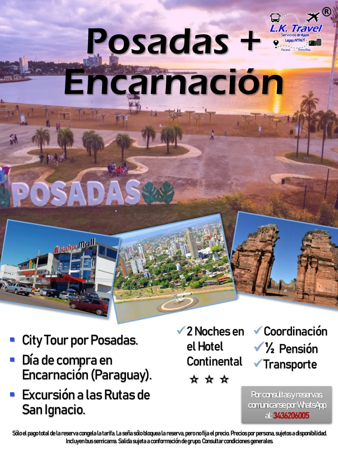 Descubrí la magia de la región con nuestro city tour Posadas + Encarnación. Comenzá en la ciudad de Posadas, capital de la provincia de Misiones, donde podrás disfrutar de un paseo guiado por sus calles históricas y emblemáticas. Luego, visitá las Ruinas de San Ignacio, un sitio arqueológico que testimonia la rica historia jesuita de la región. Continuá tu aventura en Encarnación, Paraguay, un encantador destino fronterizo con Argentina, ideal para realizar compras y disfrutar de la gastronomía local.